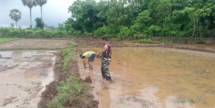 Gentra.co.id NTT – NTT – Rote Ndao – Serka Yandri Selano Babinsa Koramil 03/Batutua Kodim 1627/Rote Ndao, dalam mendukung ketahanan pangan, dengan Semangat ikut serta terjun langsung ke sawah bantu para petani desa diwilayahnya saat mengolah lahan. Inilah yang dilakukan oleh Babinsa Kodim 1627/Rote Ndao kepada para petani warga desa wilayahnya.