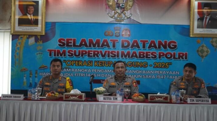 Gentra.co.id Bali – Polda Bali – Polres Tabanan – Humas Tabanan. Tim Supervisi Mabes Polri yang dipimpin oleh Brigjen Pol. Drs. Hudit Wahyudi, M.Hum., M.Si., melakukan supervisi Operasi Ketupat Agung 2025 di Polres Tabanan pada Rabu (26/3/2025). Dari pukul 08.30 wita s/d 10.00 wita, Bertempat di Aula Wisnu Hartono Polres Tabanan, kegiatan ini dihadiri oleh sejumlah pejabat utama dari Mabes Polri, Kapolres dari beberapa wilayah di Bali, serta pendamping dari Biroops Polda Bali. Supervisi ini bertujuan untuk memastikan kesiapan pengamanan menjelang Hari Raya Idul Fitri 1446 H dan Hari Raya Nyepi Tahun Saka 1947.