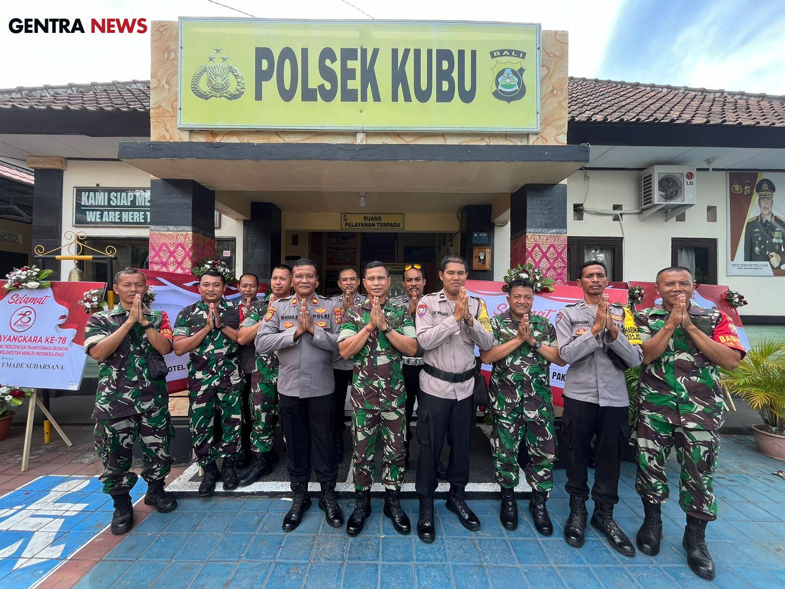 “Terimakasih atas kedatangan rekan-rekan TNI Korami Kubu sudah meluangkan waktu, kami berharap sinergitas TNI Polri tetap terjalin dengan baik, yang selama kita sudah laksanakan, melalui tema Hari Bhayangkara ke 78 tahun 2024, Polri Presisi Mendukung Percepatan Transformasi Ekonomi yang Inklusif dan Berkelanjutan Menuju Indonesia Emas, maka lewat sinergisitas yang ada hal itu dapat terwujud,” Waka Polsek Kubu Iptu I Wayan Sutanaya