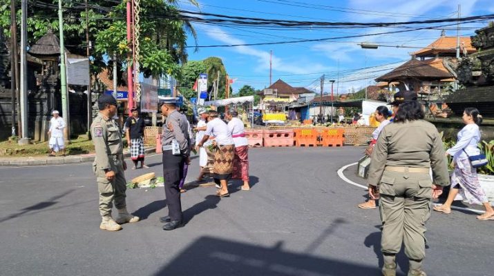 Personil Polsek Bangli Bersinergi dengan Instansi Terkait Laksanakan Pengamanan Kegiatan Nangluk Merana di Simpang Empat Catus Pata