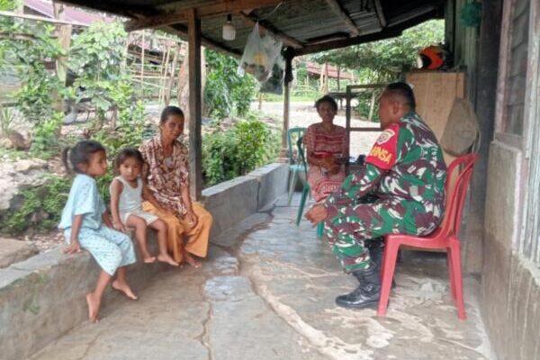 Gentra.co.id Bali – KODIM 1605/BELU, Babinsa Desa Henes Koramil 1605-03/Weluli Serda Yan Leto dalam melaksanakan pemantauan wilayah, melaksanakan komsos dengan warga masyarakat binaannya di