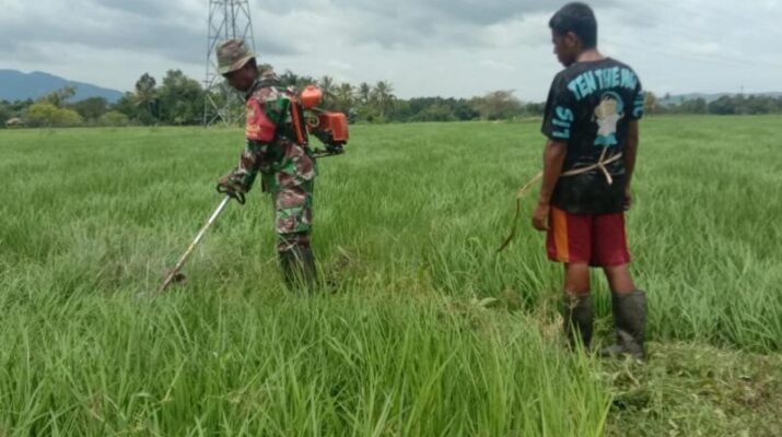 Cegah Hama, Babinsa Dampingi Petani Bantu Bersihkan Rumput Liar Di Pematang Sawah