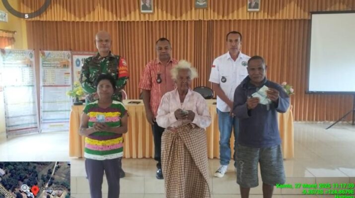 Gentra.co.id NTT – KODIM 1605/BELU, Babinsa Koramil 1605-06/Halilulik Serda Buntoro menghadiri penyaluran Bantuan Langsung Tunai Dana Desa (BLT-DD) kemiskinan extrim tahap I tahun anggaran