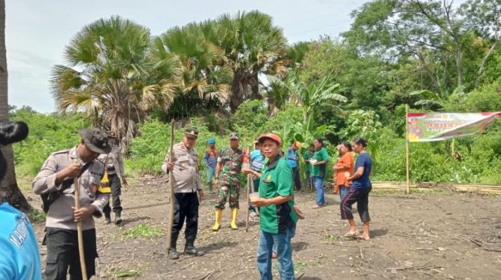 Gentra.co.id NTT – NTT – Ende/Maurole, Demi menjaga ketahanan pangan, Babinsa Koramil 04/Maurole Sertu Donatus Kiri bersama Bhabinkamtibmas membantu petani menanam jagung di Desa