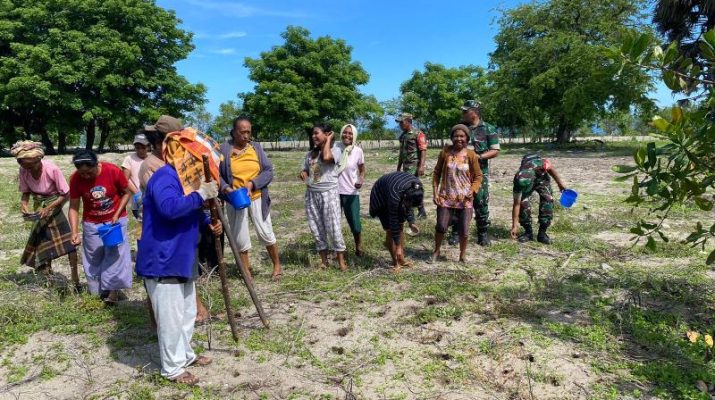 Gentra.co.id NTT – NTT – Ende/Maurole, Memanfaatkan peralihan musim, Babinsa Desa Uludala Koramil 04/Maurole Sertu Denis Fernandes bersama Kepala BPP dan Pastor Paroki Santo