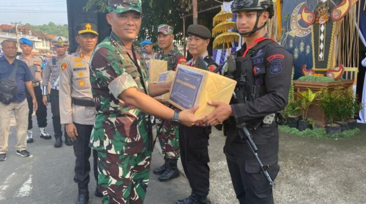Gentra.co.id Bali – Koramil 1623-03/Rendang bersama Polsek Rendang dan Pecalang melaksanakan apel gabungan dalam rangka pengamanan pengarakan ogoh – ogoh serangkaian hari raya nyepi
