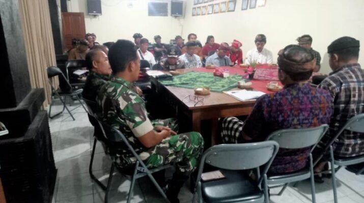 Gentra.co.id Bali – Mewakili Danramil, Batituud Koramil 1623-02/Abang Peltu Ida Bagus Wahyuda menghadiri rapat koordinasi dalam rangka pelaksanaan pawai ogoh – ogoh serangkaian hari