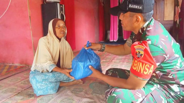 Babinsa Rasabou Peduli, Berikan Bantuan Sembako kepada Warga Kurang Mampu