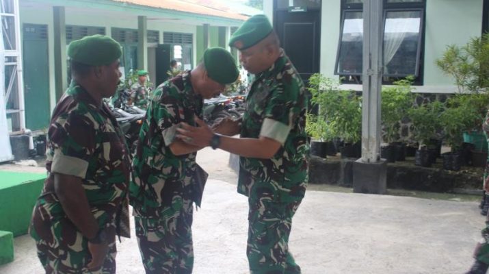 Gentra.co.id NTT – Kupang – Kodim 1604/Kupang menggelar upacara wisuda purna tugas bagi dua anggota, yakni Pelda Patrai dan Serka Yaskup, di garasi Serbaguna