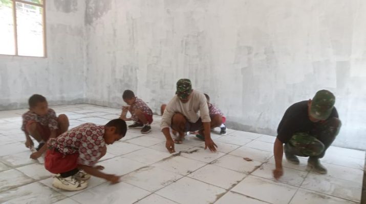 Gentra.co.id NTT – NTT-KEFAMENANU., Pemandangan luar biasa tergambar di lokasi TNI Manunggal Membangun Desa (TMMD) ke-123 Kodim 1618/TTU, tepatnya di SDN Lanaus, Desa Lanaus,