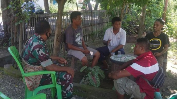 Gentra News NTT – SIKKA, Babinsa Koramil 1603-04/Kewapante Kodim 1603/Sikka Serka Daniel Maukay melaksanakan Komunikasi Sosial (Komsos) dengan warga binaan, di Desa Watuliung Kecamatan