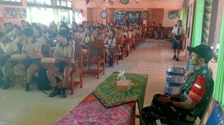 Gentra.co.id Bali – Tabanan – Guna membentuk generasi muda yang tangguh dan berkarakter, Personel Koramil 1619-08/Penebel memberikan materi dasar kepemimpinan kepada para siswa SMP