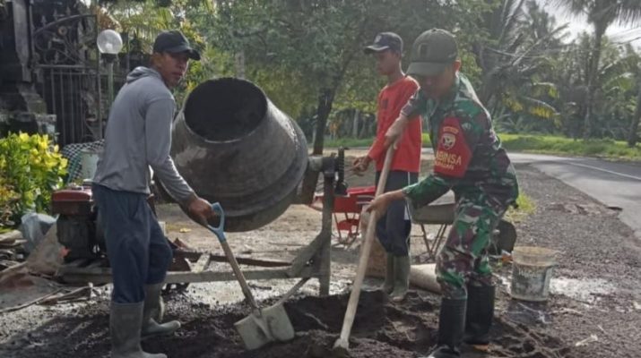 Gentra.co.id Bali – Tabanan – Dalam upaya menjalin Kedekatan dengan masyarakat, Babinsa Desa Buruan Koramil 1619-08/Penebel Peltu I Made Setiasa turut serta dalam pengecoran