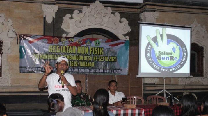 Gentra.co.id Bali – Tabanan – Dalam rangka mendukung program TNI Manunggal Membangun Desa (TMMD) ke-123, Satgas TMMD Kodim 1619/Tabanan menggelar kegiatan sosialisasi bertema kenakalan