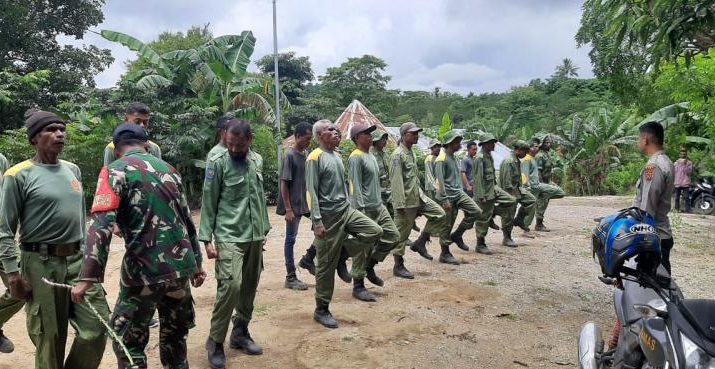Babinsa Koramil 01/Kota SoE, Serda Nyongsri Faot, bersama Babinkamtibmas Latih Linmas, kegiatan PBB dan (Wasbang).
