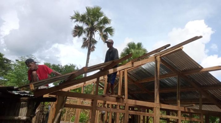 Satgas TMMD ke-123 Memasuki Tahap Pengatapan RTLH di Desa Lanaus