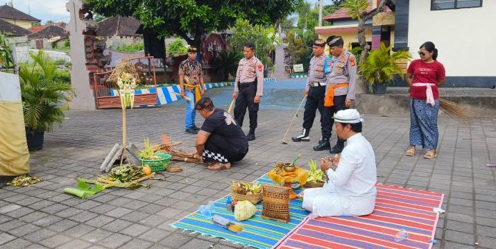 Gentra.co.id Bali – Polsek Kubu, Dalam rangka menyambut Hari Raya Nyepi Tahun Saka 1946, Polsek Kubu melaksanakan upacara pecaruan di halaman kantor Mapolsek Kubu,