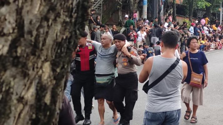 Sat Samapta Polres Tabanan Berikan Pertolongan Cepat kepada Warga yang Pingsan saat Pawai Ogoh-Ogoh