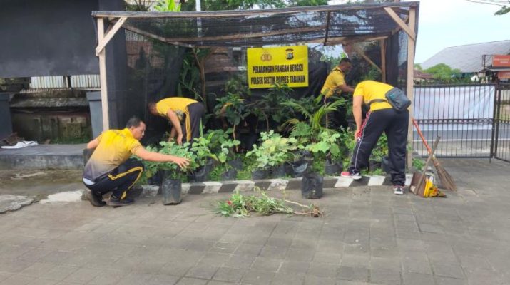 Gentra.co.id Bali – Polres Tabanan-Polsek Seltin. Kapolsek Seltim AKP I Nyoman Artadana S.H.,M.H., bersama sama personil Polsek Seltim melaksanakan kegiatan perawatan sayur-sayuran (Cabe dan