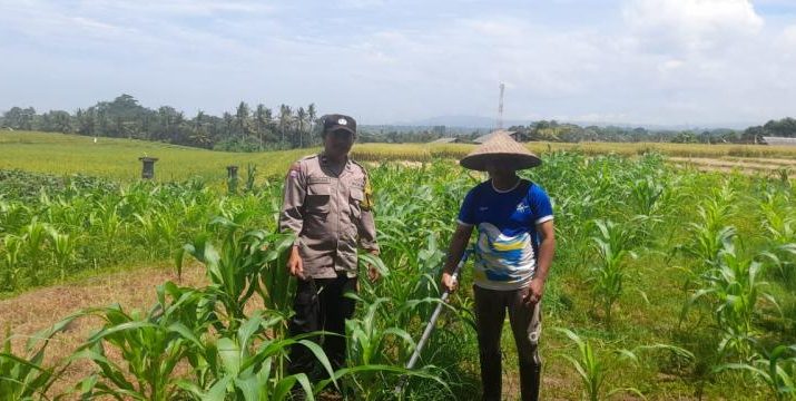 Gentra.co.id Bali – Polres Tabanan-Polsek Kerambitan, Rabu 12 Maret 2025; Bhabinkamtibmas Ds. Belumbang AIPDA I WAYAN SUARSANA membantu perawatan tanaman jagung berupa kegiatan pembersihan