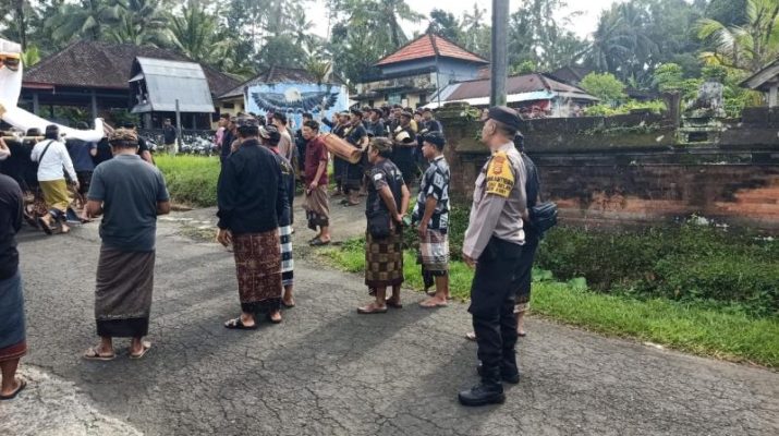 Bhabinkamtibmas Desa Cau Belayu Pengamanan Upacara Pitra Yadnya Ngaben Warga Desa Binaan