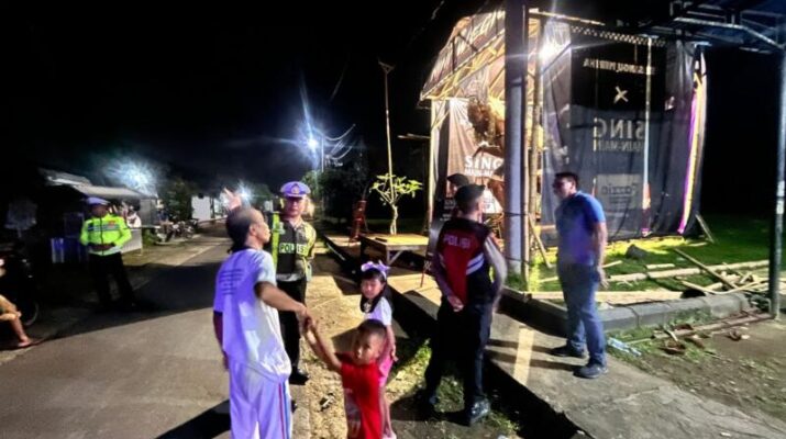 Bhabinkamtibmas Desa gubug mengamankan kegiatan parade ogoh-ogoh anak anak