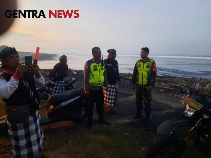Gentra.co.id Bali – Polres Tabanan-Polsek Kerambitan, Senin 24 Maret 2025 Bhabinkamtibmas Desa Batuaji AIPTU I Wayan Sukanada bersama Pecalang melaksanakan pengamanan jalur Melasti dari