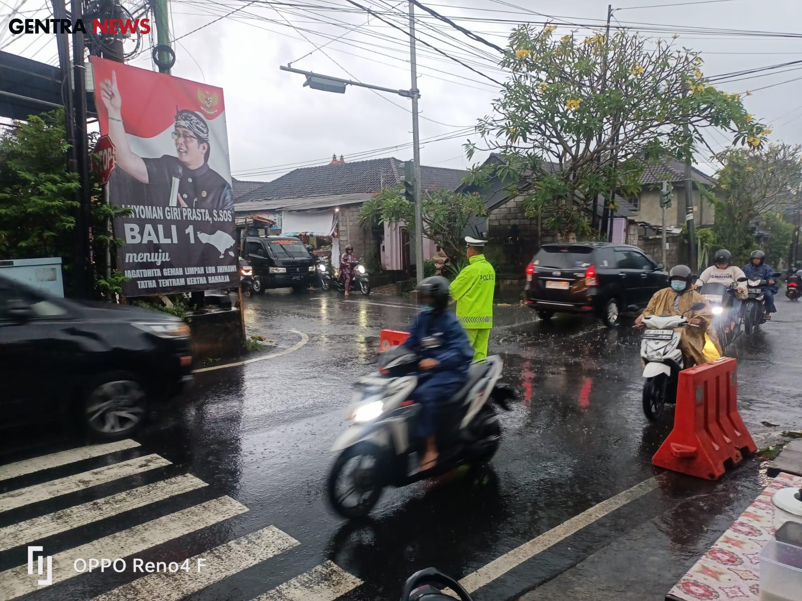 “Walaupun kondisi cuaca sedang hujan aktivitas masyarakat pagi ini meningkat, untuk memperlancar arus lalu lintas dan mengantisipasi kemacetan serta kecelakaan kita lakukan pengaturan sepanjang jalur utama dan jalur yang ada di daerah hukum Polres Badung.” Ungkap AKP Sugianta seijin Kapolres Badung AKBP Teguh Priyo Wasono, SIK.