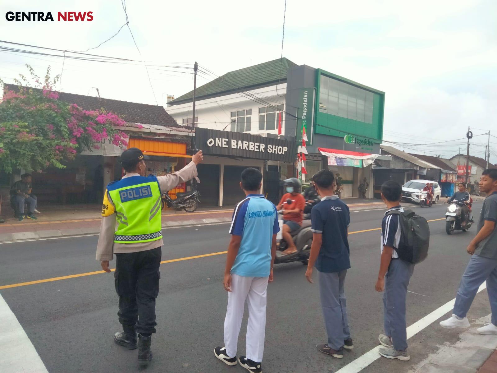 Gentra News Bali – Mangupura, Kehadiran Bhayangkara Pembina Keamanan dan Ketertiban Masyarakat (Bhabinkamtibmas) ditengah-tengah masyarakat sebagai pelindung, pengayom namun juga sebaga pelayan masyarakat sanat dibutuhkan oleh masyarakat, Seperti halnya Salah satu personel Bhabinkamtibmas Bripka I Ketut Sudirta, SH. yang dalam kesehariannya merupakan Bhabinkamtibmas Kelurahan Lukluk Kecamatan Mengwi Kabupaten Badung, Bali dengan sigap membantu masyarakat menyeberang jalan saat arus lalu lintas ramai. di depan SMA N 1 Mengwi Desa Mengwi Kecamatan Mengwi Kabupaten Badung, Bali. Rabu, 7 juli 2024 pagi.