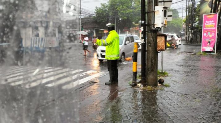 Gentra News Bali – Mangupura – Meskipun cuaca hujan mengguyur daerah hukum Badung pagi ini, hal tersebut tidak menghalangi semangat personel Polres Badung dalam memberikan pelayanan terbaik kepada masyarakat. Sejak pagi, hujan deras turun secara terus-menerus, namun personel kepolisian tetap berjaga di berbagai titik jalan raya guna memastikan keamanan dan kelancaran arus lalu lintas,
