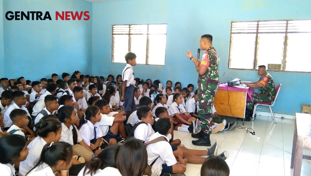 Gentra News NTT – Tanamkan Nilai-nilai kebangsaan sejak dini kepada generasi penerus Bangsa, Anggota Babinsa Koramil 01/Lewa, Kodim 1601/Sumba Timur Serma Gede Sukerana memberikan materi wawasan Kebangsaan kepada para siswa – siswi SMP Ketrampilan Lewa bertempat di Aula SMP Ketrampilan Lewa Kelurahan Lewa,Kecamatan Lewa, Kabupaten Sumba Timur. Selasa (16/07/2023).