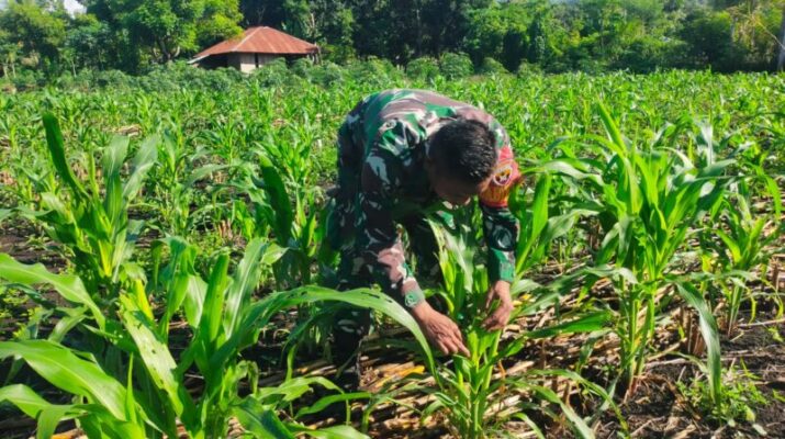 Gentra.co.id –Babinsa Koramil 03/Pahunga Lodu Jajaran Kodim 1601/Sumba Timur Serda Hendrik Hati Waluandja dampingi petani mengecek perkembangan tanaman jagung milik bapak Alfonsius Tara Landu, di Desa Paranda,Kecamatan Wulla Waijelu,Kabupaten Sumba Timur.Rabu (07/05/2025).