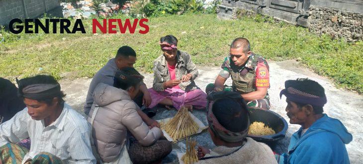 Kali ini Pelda Wayan Renes melaksanakan Komsos dengan warga binaan yang sedang melaksanakan persiapan Puja Wali di Pura Manik Muncar Desa Belandingan, Kecamatan Kintamani, Kabupaten Bangli. Minggu (21/7/24)
