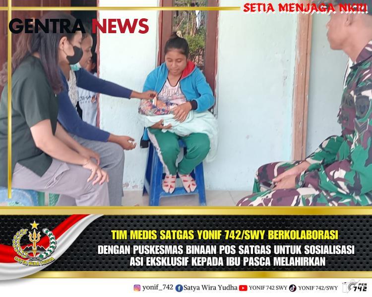 Menurut Dokter Satgas Lettu Ckm dr. Iwan Petrus Tampubolon, kami berkolaborasi dengan Puskesmas Binaan pos satgas untuk melaksanakan kegiatan penyuluhan Asi Eksklusif door to door terhadap 9 orang ibu pasca melahirkan. Para ibu ini tadinya warga binaan kami, pada saat hamil rutin kami berikan susu sapi yang sudah dipasteurisasi bantuan dari pengurus pusat Persit Chandra Kirana.