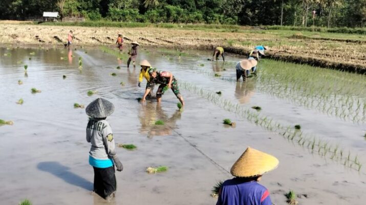 Tingkatkan Ketahanan Pangan, Babinsa Desa Tongo Bantu Petani Tanam Padi.