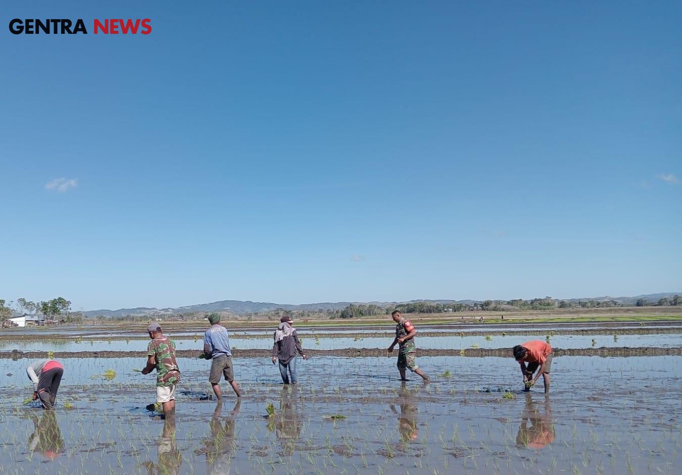 Gentra News NTT-Babinsa Koramil 01/Lewa jajaran Kodim 1601/Sumba Timur Pelda Onisimus Niab melaksanakan pendampingan menanam padi kelompok tani Katambir, Kelurahan Lewa Paku, Kecamatan Lewa, Kabupaten Sumba Timur. Minggu (11/08/2024)