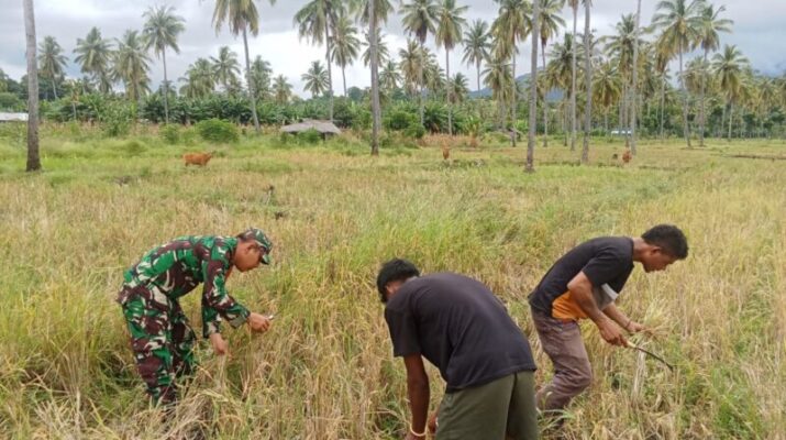 NTT-SIKKA Babinsa Koramil 1603-02/Talibura Kodim 1603/Sikka, Serda Muhaidin, melaksanakan panen padi bersama masyarakat Desa Tana Rawa, Kecamatan Waiblama, Kabupaten Sikka. Kegiatan ini merupakan bentuk sinergi antara Babinsa dan masyarakat dalam meningkatkan ketahanan pangan dan memperkuat hubungan antara TNI dan rakyat, Senin(23/06/2025).