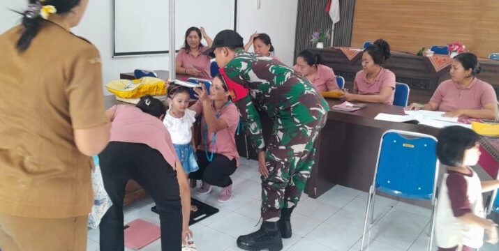 Klungkung,- Babinsa Selisihan Koramil 1610-01/Klungkung Serda Dewa Wasista bersama staf desa serta petugas kesehatan desa dan Puskesmas Klungkung II menggelar kegiatan rutin Posyandu Balita di Pustu Desa Selisihan, Kecamatan/Kabupaten Klungkung, Senin ( 13/10/25 ).