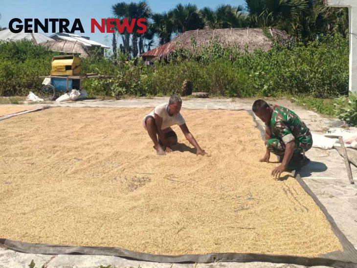Gentra News NTT – KODIM 1605/BELU, Di saat musim panen padi usai, salah satu kegiatan yang wajib yang di lakukan oleh para petani adalah menjemur gabah dari hasil panen padi, yang mana bertujuan untuk melakukan proses pengeringan kadar air pada gabah tersebut.