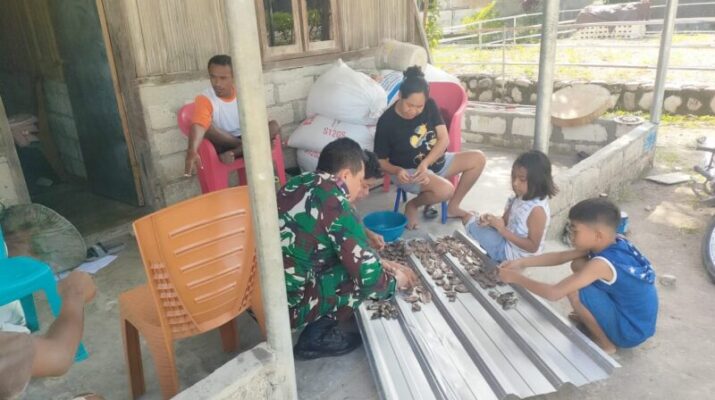 Tingkatkan Perekonomian Warga Babinsa Kota So’e Bantu Warga Binaan Jemur Ikan Asin