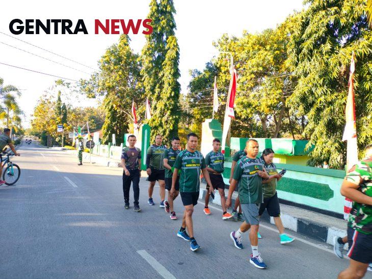 Setelah apel, seluruh personel berbaris rapi untuk memulai senam yang dipandu oleh instruktur. Suasana penuh semangat dan kegembiraan tampak jelas ketika semua personel mengikuti gerakan senam dengan antusias. Setelah senam, kegiatan dilanjutkan dengan jalan santai mengelilingi kantor Makodim.