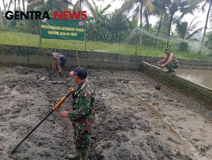 Gentra News Bali, Bangli – Dalam rangka mensejahterakan masyarakat di bidang ketahanan pangan khususnya di bidang perikanan, Kodim 1626/Bangli melalui Koramil 1626-02/Susut memberikan bantuan berupa bibit ikan lele jumbo, dan ikut membantu mengerjakan pengolahan lahan yang semula berupa lahan kurang produktif kini disulap menjadi kolam tempat pemeliharaan bibit lele jumbo.