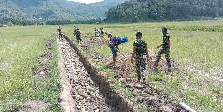Saluran irigasi tersebut merupakan infrastruktur vital yang menopang sistem pengairan lahan pertanian masyarakat di wilayah tersebut. Kegiatan pengecoran dilaksanakan secara bertahap oleh personel Satgas TMMD bersama warga setempat dalam semangat gotong royong dan kebersamaan.