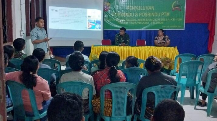 Ngada — Program TNI Manunggal Membangun Desa (TMMD) ke-126 Kodim 1625/Ngada tidak hanya berfokus pada pembangunan infrastruktur, tetapi juga menyentuh aspek peningkatan kualitas hidup masyarakat. Pada Jumat, 17 Oktober 2025, kegiatan nonfisik berupa penyuluhan Posyandu dan Posbindu PTM (Penyakit Tidak Menular) dilaksanakan di Dusun Lindi, Desa Benteng Tawa, Kecamatan Riung Barat, Kabupaten Ngada.