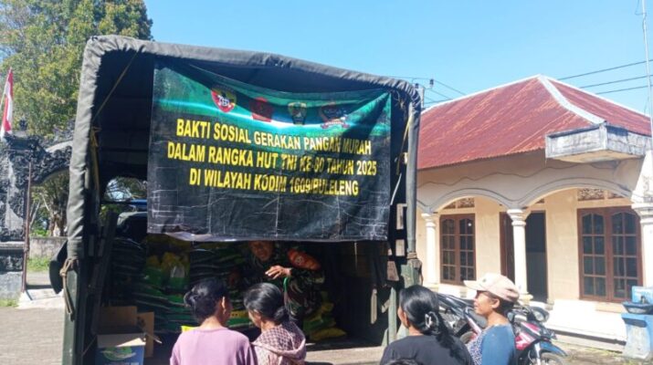 Buleleng, (2/10/2025)—Dalam rangka memperingati Hari Ulang Tahun TNI ke-80 tahun 2025, Kodim 1609/Buleleng melalui Koramil 06/Banjar melaksanakan kegiatan Bhakti Sosial Gerakan Pangan Murah yang berlangsung di Balai Banjar Desa Gesing, Kecamatan Banjar, Kabupaten Buleleng, pada Kamis (2/10). Kegiatan ini mendapat sambutan hangat dari masyarakat sebagai wujud kepedulian TNI terhadap kesejahteraan rakyat.