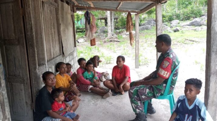 Babinsa Koramil 1618-04/Bisel, Sertu Ferdinand Bata, melaksanakan kegiatan Komunikasi Sosial (Komsos) bersama masyarakat di Desa Sainiup, Kecamatan Biboki Selatan, Kabupaten (TTU). Kegiatan ini merupakan salah satu bentuk tugas dan tanggung jawab Babinsa dalam menjaga hubungan yang harmonis dengan warga serta memastikan kondusifitas wilayah binaan.