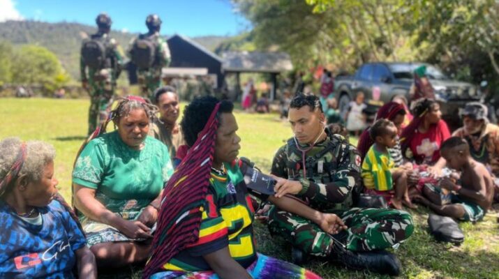 Kehangatan dan kepedulian terpancar dari langkah prajurit Satgas Yonif 743/PSY saat menyusuri Kampung Tinolok, Distrik Yambi, Kab. Puncak Jaya, Papua. Melalui Pos Tinolok, Satgas Yonif 743/PSY kembali menghadirkan pelayanan kesehatan gratis dengan menyambangi rumah-rumah warga secara langsung, Jumat (19/12/2025).