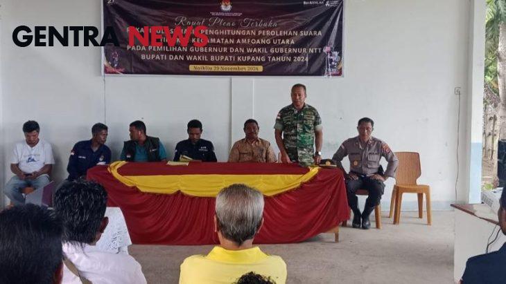 Gentra News NTT – Kupang – Danramil 1604-03/Naikliu, Kapten Inf Said Abdullah, turut hadir dalam Rapat Pleno Rekapitulasi Hasil Penghitungan Suara dalam Pemilihan Gubernur dan Wakil Gubernur serta Pemilihan Bupati dan Wakil Bupati Tahun 2024 tingkat Kecamatan Amfoang Utara, Kabupaten Kupang. Kehadiran TNI di lokasi ini bertujuan untuk memastikan jalannya proses rekapitulasi suara berlangsung dengan aman, tertib, dan sesuai dengan ketentuan. Jumat (29/11/2024)