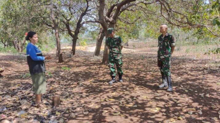 SUMBA BARAT — Danramil 02/Walakaka Kodim 1613/Sumba Barat Kapten Inf Abdul Manan meninjau lokasi yang akan dijadikan tempat pembuatan sumur bor di Desa Kabukarudi, Kecamatan Lamboya, Kabupaten Sumba Barat, Selasa (07/10/2025).