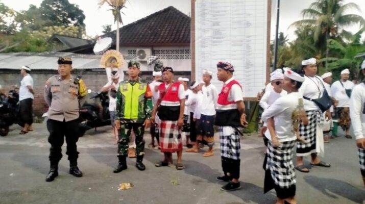 Untuk memastikan jalannya upacara aman dan lancar, kita lakukan pengawalan gabungan bersama Bhabinkamtibmas dan pecalang, “terangnya.